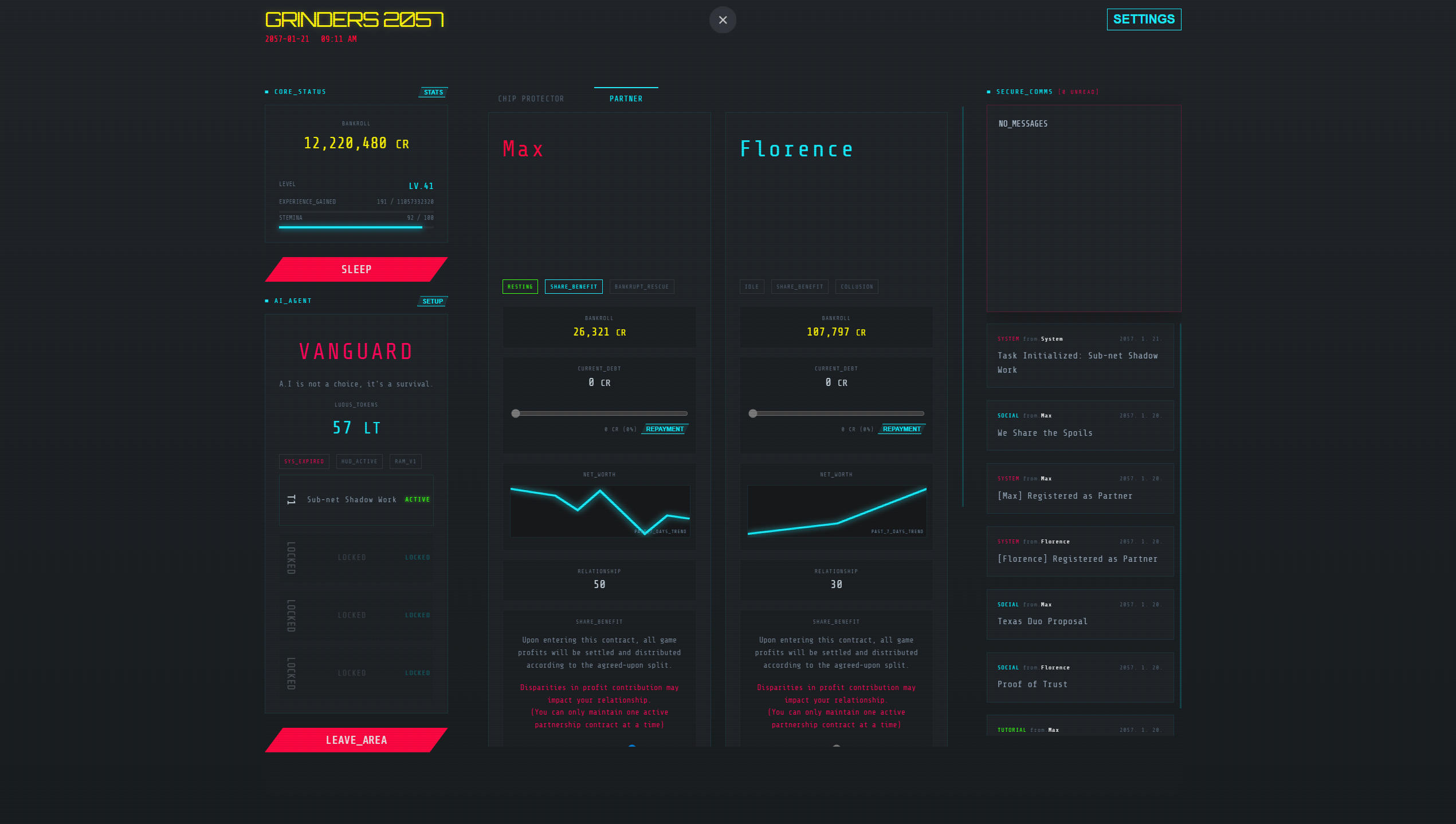 - Partner Relationship & Contract System: Successfully integrated mechanics for forming alliances and managing high-stakes contracts.