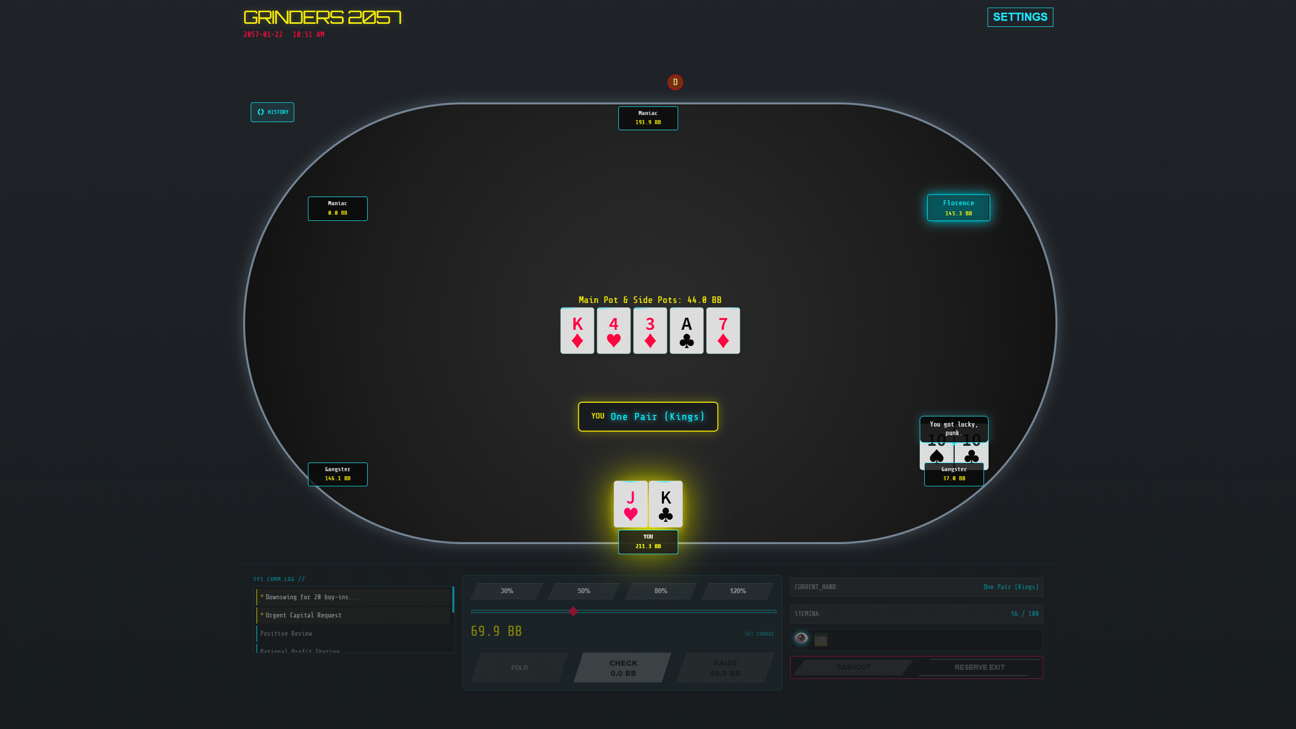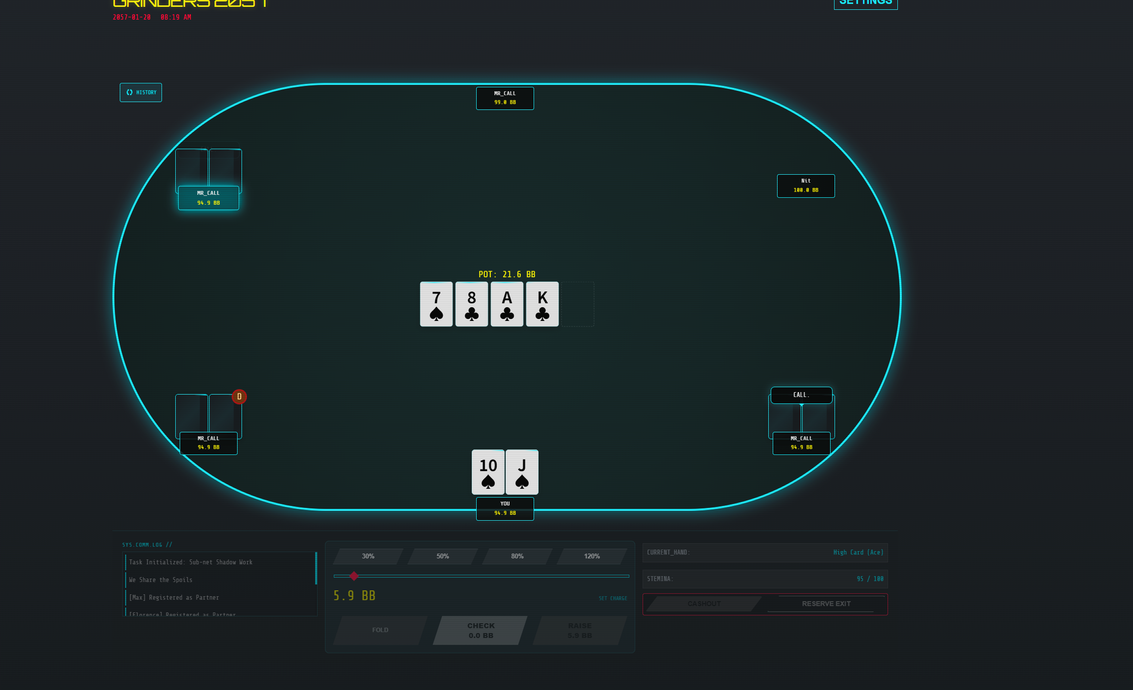 - Advanced GTO-based AI: We are developing high-level AI NPCs capable of executing GTO (Game Theory Optimal) strategies for a more challenging experience.